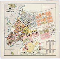 | Karta med tomt numrorna | Karta med dagens gatunumror ( gamla i rött och daens i grönt). |